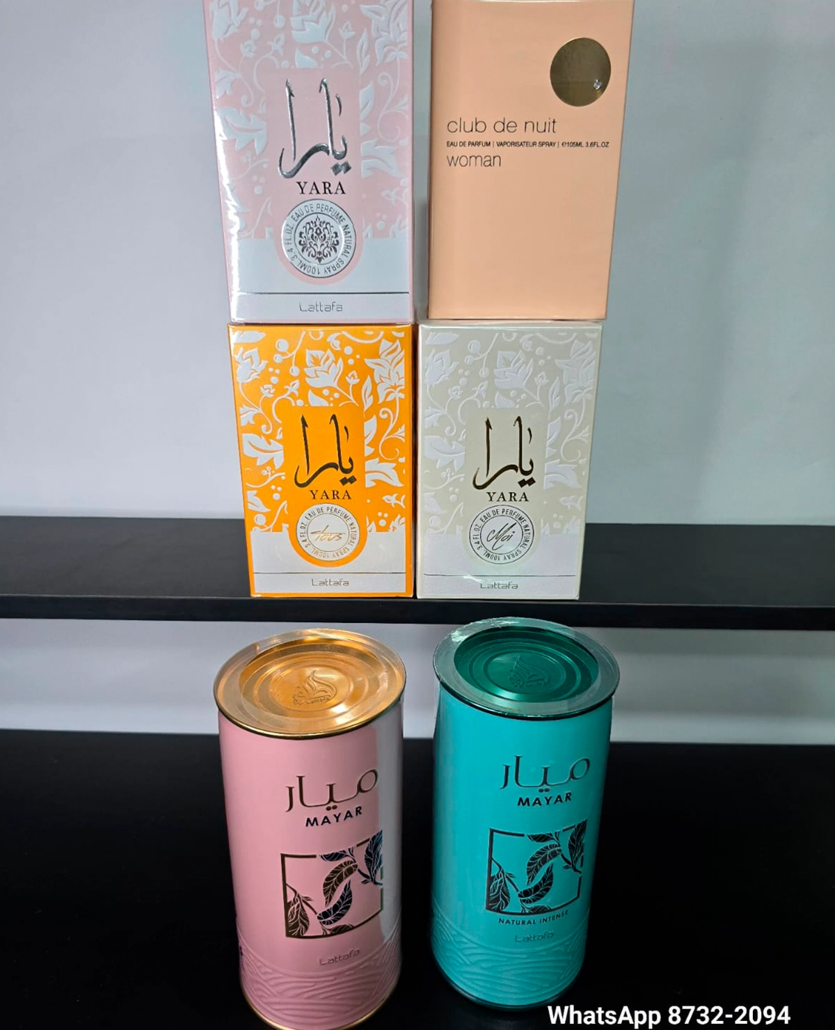 Perfume Mayar Natural Intense Turquesa para mujer-100ml+ Perfume Lattafa Mayar Rosado en spray para mujer -100ml+Armaf Club de Nuit para mujer -100ml+Yara Rosado de Lattafa para mujer-100m+Yara Tous de Lattafa Perfume Natural en Spray para Mujer-100ml+Yara Moi de Lattafa Perfume Natural en Spray para Mujer-100ml