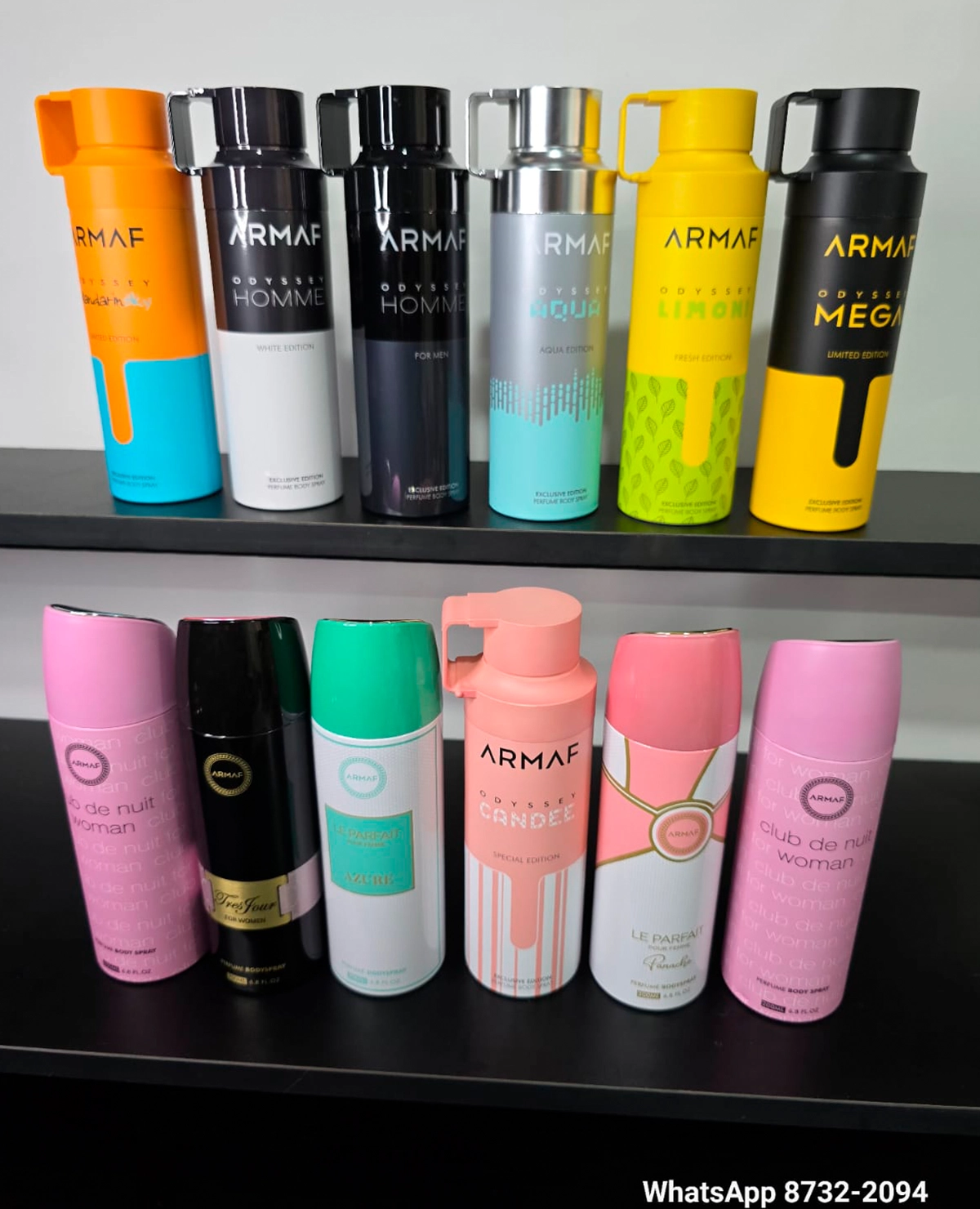 Splash en aerosol Odyssey Limoni-200ml+Splash en Aerosol Odyssey Mandarin SKy -200ml+splash en Aerosol Odyssey Homme white Edition -200ml+Splash en Aerosol Odyssey Mega -200ml+ Splash en Aerosol Odyssey Homme for Men-200ml+splash en Aerosol Odyssey Aqua-200ml+2 Splash en Aerosol Armaf club de nuit women-200ml+splash en aerosol Armaf Tres Four women-200ml+Splash en aerosol Armaf Le Parfait Azure-200ml+splash en aerosol Armaf odyssey Candee-200ml+splash en aerosol Armaf Le Parfait Panache-200ml