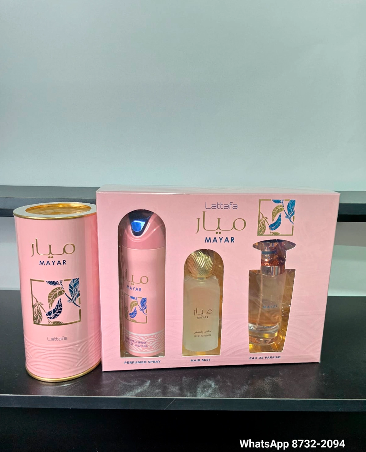 Lattafa Mayar Rosado para mujer -100ml+ Estuche Mayar(splash en aerosol-200ml+Hair Mist-50ml+ perfume 100ml)